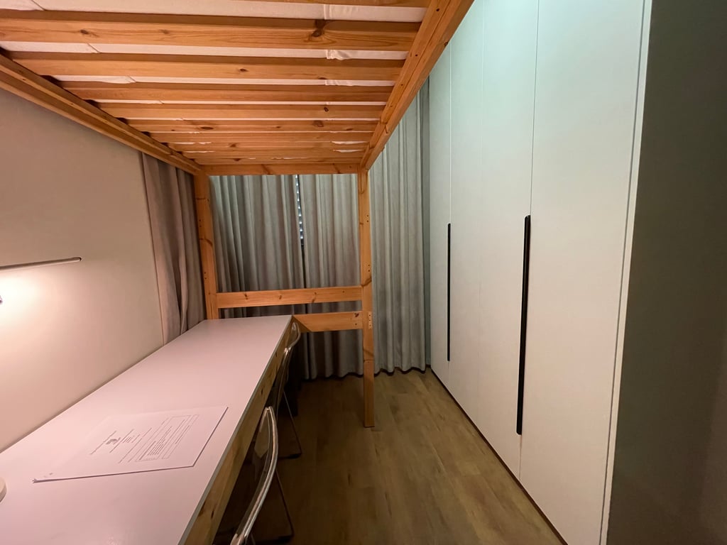 A lot of 1-bedroom units have small bedrooms. A queen-size bed usually fits, but a king-size might be a tight squeeze. With a king, you might have little room left for bedside tables or a dresser. Always check the room dimensions beforehand to ensure you can still move around comfortably.