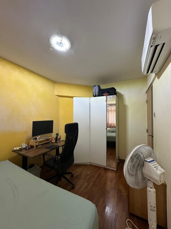 Establish clear common area rules and assign personal storage spaces in each bedroom. Use the third bedroom strategically - as a study, guest room, or helper's quarters. Create a household schedule for shared spaces like bathrooms and kitchen. Consider installing additional hooks and organizers in common areas to prevent clutter.