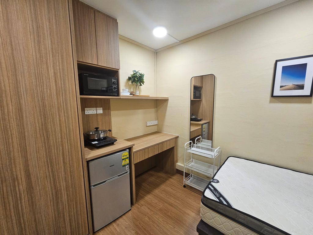 Yes, but requires planning. The separate bedroom allows one person to sleep while the other works or watches TV in the living area. Consider blackout curtains and sound management. Some couples prefer open-plan studios for togetherness, while others need the bedroom separation for different sleep schedules or work-from-home arrangements.