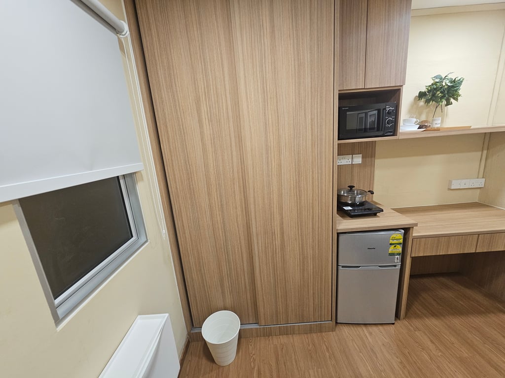 Measure wardrobe depth, check for full-length hanging, and look for shelves that suit daily items. Visualize bed placement, door swing, and airflow. Make sure a desk or cot fits without blocking pathways or covering sockets and switches.