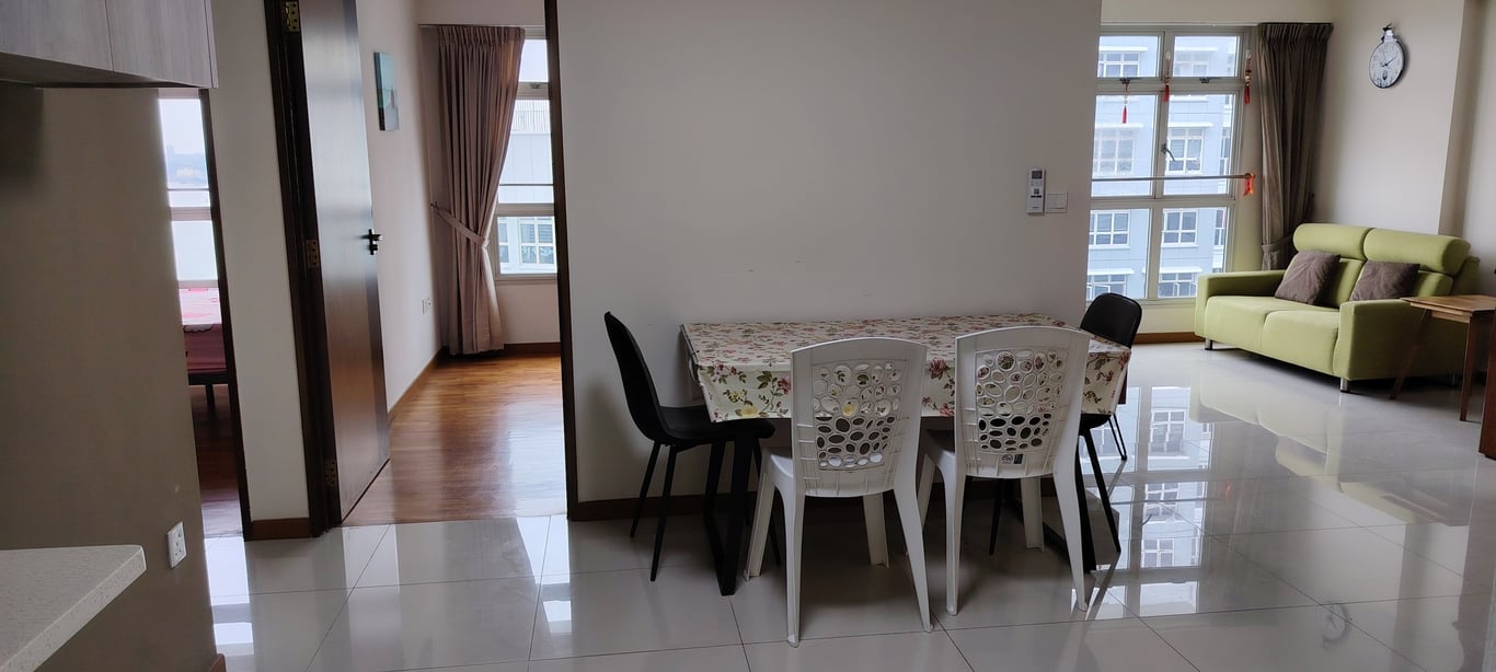 In most 3-bedroom flats, bedrooms are grouped away from the living area. Often a hallway leads to the bedrooms, separate from the living room. This helps keep noise from TV or guests in the living room from reaching the bedrooms easily.