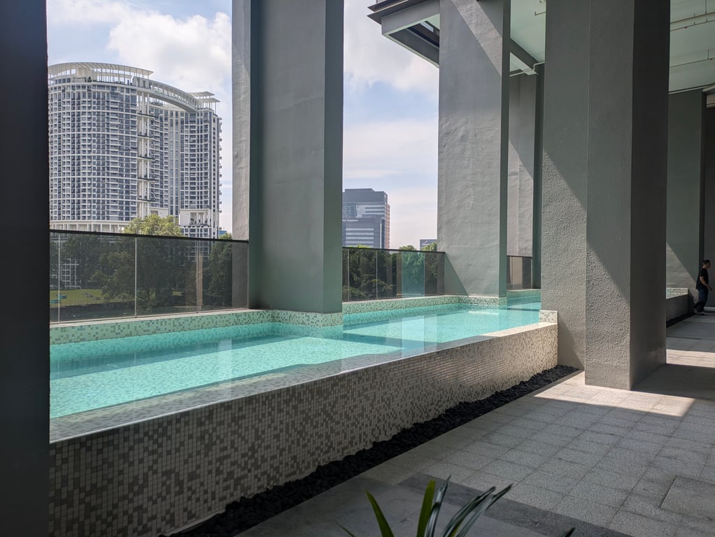 - A 50m infinity pool facing Pearl’s Hill Park, Jacuzzi spa pool, steam room