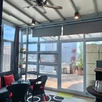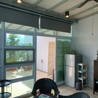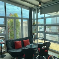 - recreational chairs and table in glass room