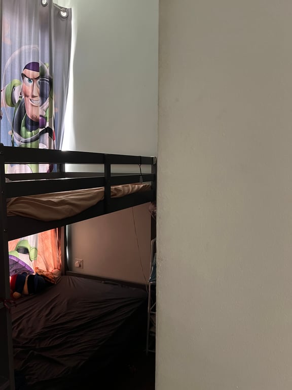Comes with 2 big doors built in cabinets. Double decker bed.