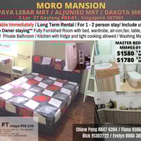 6 August /Master Room/Private Bathroom/Wifi/Aircon/No Owner Staying/No Agent Fee/Allowed Cooking/No Pets Allowed/Near Paya Lebar MRT/Aljunied MRT/Dakota MRT