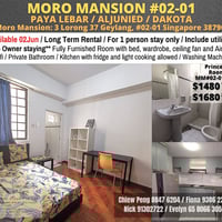 Immediate Available /Master Room/Private Bathroom/Wifi/Aircon/No Owner Staying/No Agent Fee/Allowed Cooking/No Pets Allowed/Near Paya Lebar MRT/Aljunied MRT/Dakota MRT/FOR 1 or 2 pax stay