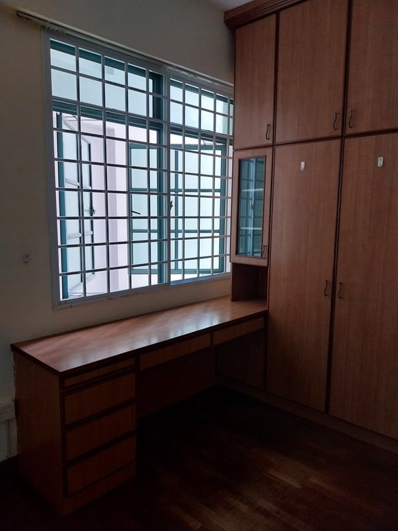 Room are furnished with 4 door wardrobe, 1 study table and chair, and single bed with mattress. Functional kitchen with Fridge, washer, microwave oven and cabinet, rental does not include utilities.