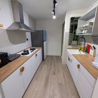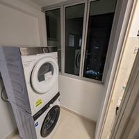 All-new electrical appliances: hot/cold water dispenser, microwave, refrigerator, induction cooker, washer, dryer, and automatic laundry rack system