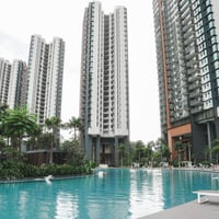The condo facilities include multiple swimming pools, a gym, tennis courts, basketball courts, and table tennis.