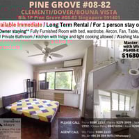 Master bedroom Room with private bathroom /Strictly Single Occupancy/no Owner Staying/No Agent Fee/Cooking allowed/Near Clementi MRT/Dover MRT/ AVAILABLE Immediately