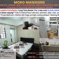 Master Room/Private Bathroom/Wifi/Aircon/No Owner Staying/No Agent Fee/Allowed Cooking/No Pets Allowed/Near Paya Lebar MRT/Aljunied MRT/Dakota MRT