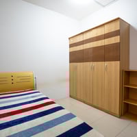 ✅ Furnished: Queen size bed, table + chair, cabinet