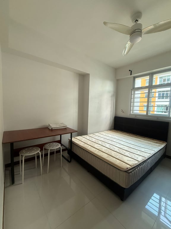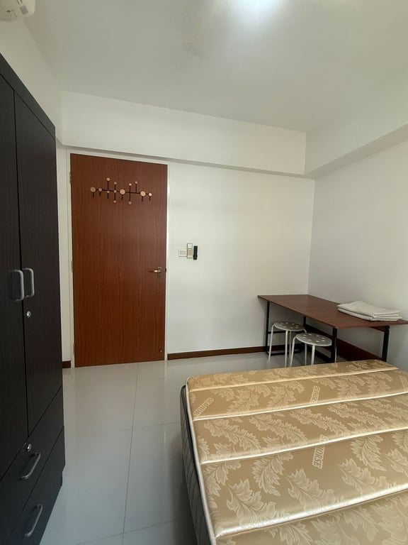 - Fully furnished with queen-size bed, wardrobe, and table