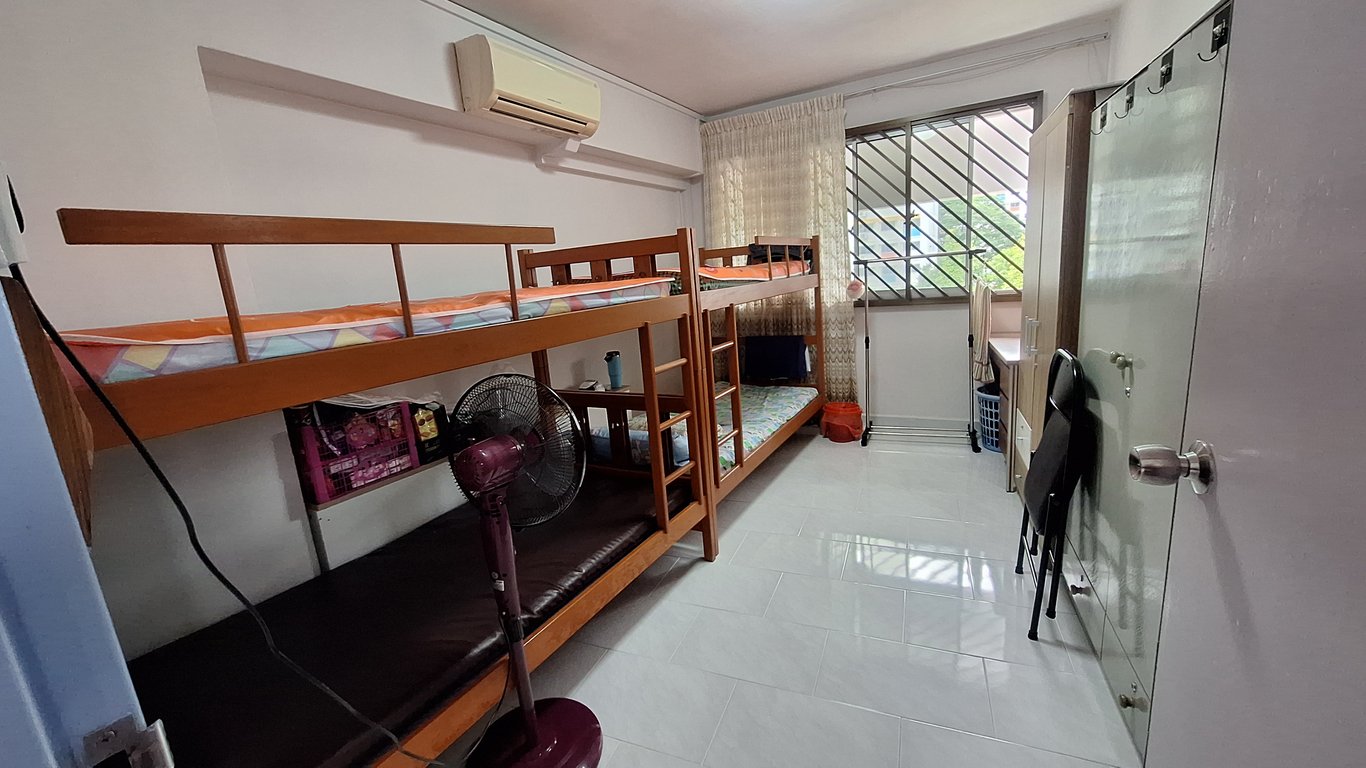 Sharing with only 1 Malaysian Chinese male in this room. He takes 1 double decker bed, you take 1 double decker bed. Plenty of space. Very clean and breezy. Stay with Chinese landlord couple, place is very clean and well-taken care of. Utilities included.