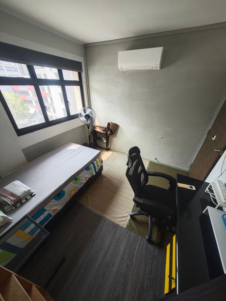 Room comes with super single bed, desk, chair, wardrobe, shelf and air-con. Rental includes WIFI and PUB.