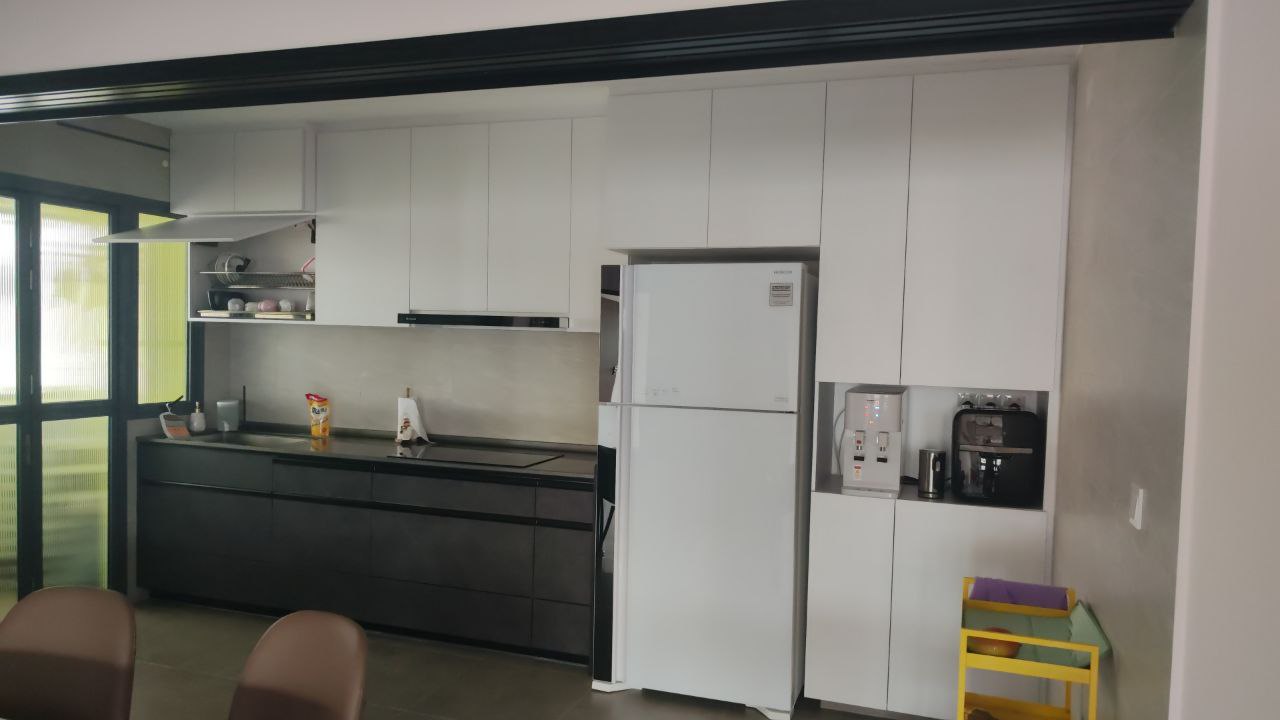 Shared access to a modern kitchen and bathroom