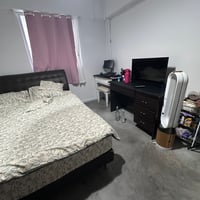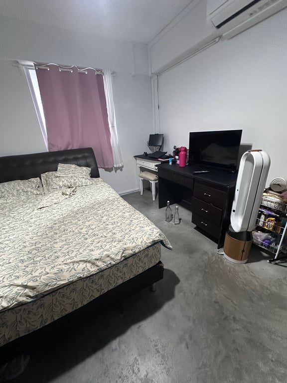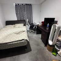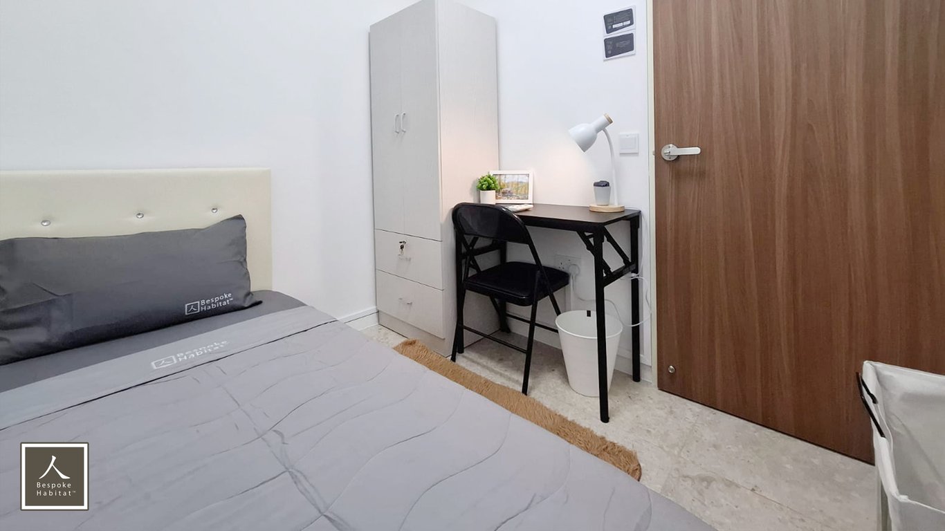 $900 SGD including utilities. You have your own toilet. Only light cooking is allowed. The room is simple and straightforward, and includes a queen-size bed, study table, wardrobe, and bag organizer.
