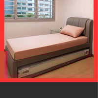 Room with Single bed, Ceiling Fan Long mirror, study desk,
