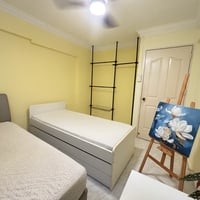The flat is newly furnished & you will be the 1st to enjoy this room. I am looking for 1 flatmate so there’s just 2 of us in this flat. Hence, one of the beds will be remove to give you more personal space. This is one of the 2 common rooms in a HDB is in the city area right next to Kampong Gelam & near Bugis Junction. Nearby Campus: SMU, JCU, NAFA, LASalle Sharing of
