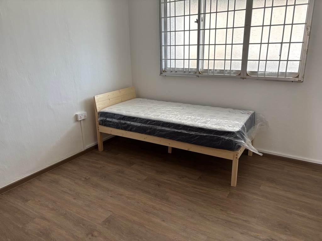 Brand new room. New wardrobe, new bed, mattress (still in plastic sheet) and new aircon.