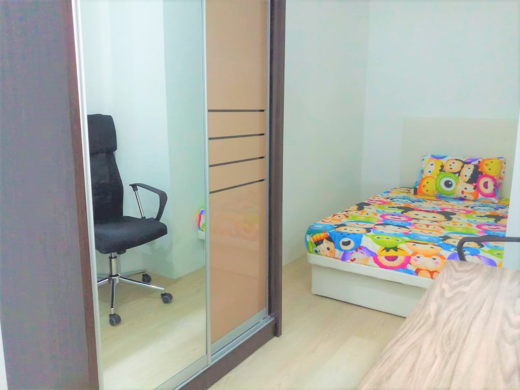 Room code: tbrw2. Aircon and fully furnished: SuperSingle-storage-bed & mattress, wardrobe, study desk, hi-speed fibre broadbard / wifi.