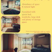 Preferably looking for long term leases. Renting the rooms at SGD1350 (Room with queen bed) and SGD1250 (Room with single bed) respectively for single occupancy. Willing to negotiate slightly on rent price in favor of good vibes within the household.