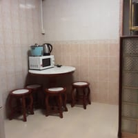 • Basic flooring with stone/marble-like tiles, easy to clean.
